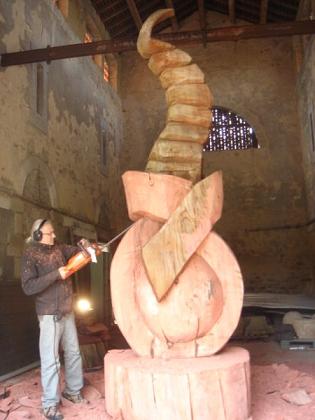 Jean-Bernard JOUTEAU, sculpteur vend ?en r ?alisera une œuvre monumentale ? la tron ?onneuse en public, sur le th ?me ??tourbillon ?? du samedi 21 ao ?t au dimanche 29 ao ?t 2010.